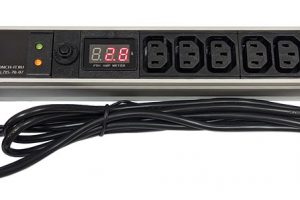 Горизонтальный ПДУ с функцией АВР для стандартного 19 дюймого шкафа имеет 9 розеток С13, амперметр и кабели подключения питания длиной 1.7 м. с вилками Schuko