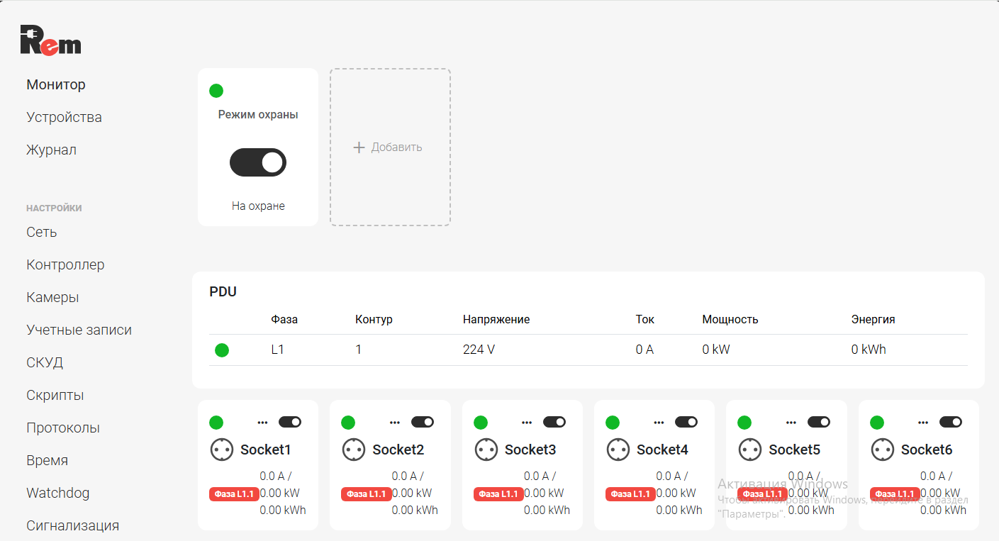 - — возможность программирования различных сценариев выключения/включения оборудования