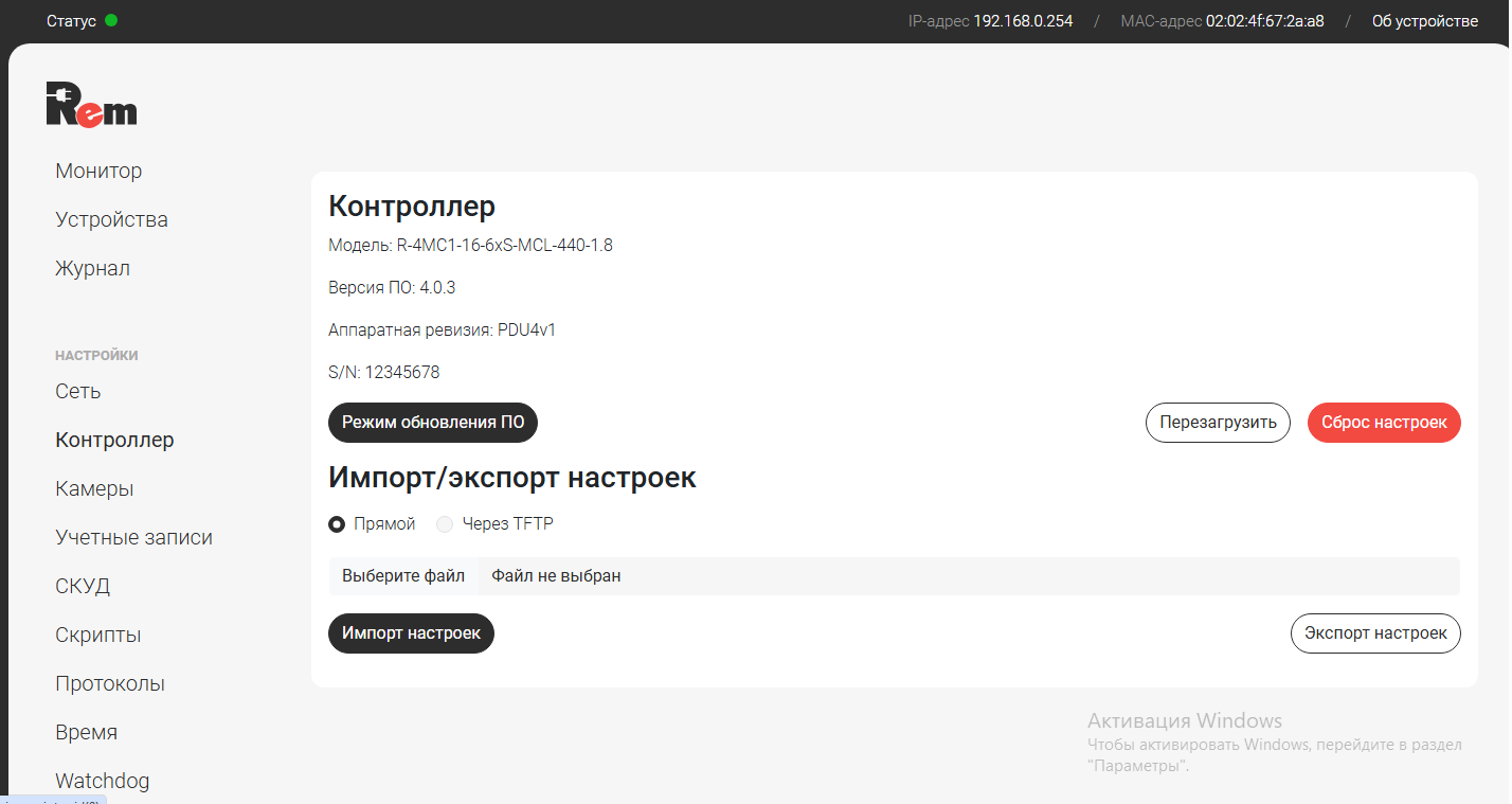 Контроллер ПДУ находится под управлением операционной системы Linux.