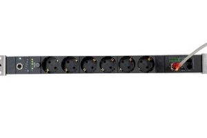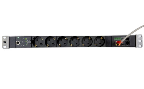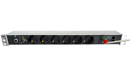 Горизонтальный ПДУ с функцией управления и измерения для стандартного 19 дюймого шкафа имеет 6 розеток Schuko и кабель подключения питания длиной 1. 8м. с вилкой Schuko. Блок розеток имеет самые минимальные размеры (45 × 484 × 60 мм) не занимает доподнительного места в шкафу. Прост и удобен в подключении.